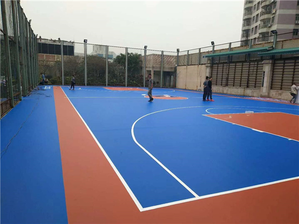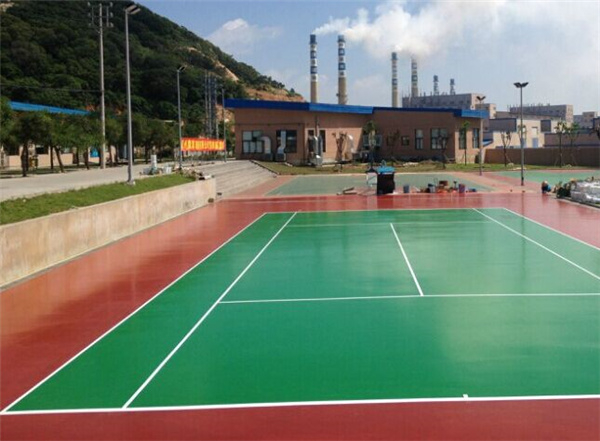按标准尺寸量度定位,用帆布线标出线条位置,然后而用美纹纸沿帆布线贴在球场上,用专用划线漆均匀用毛刷刷于两美纹纸之间,待涂料表干后把美纹纸撕掉即可。