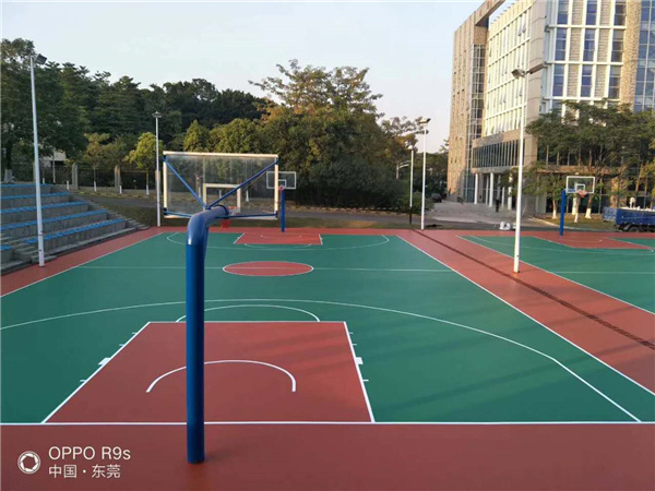 在建造篮球场地时,主场区域28*15m(包含副场32*18),再加上周围区域,总面积要达到32.1*22.1m或18m(18m为小宽度)。这样的场地可以适应各种地方级的比赛,如果利用现有场地进行各级别的国内比赛,场地的长度和宽度都可以根据实际情况比标准小一些,但是不能太多;场地长度多可缩小4m,宽度多可缩小2m,而且场地长度和宽度必须成比例(2:1)的缩小(例如总面积可缩小为26*14m)。