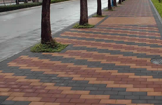 6、夯实路面。当面层的所有透水砖都铺设完成之后,为了确保牢固度,还需要进行夯实工作。夯实路面时要注意压力的大小,不同厚度的透水砖所使用的压力不相同,例如超过80毫米厚的透水砖可以使用30kN压力的平板夯机,而对于厚度小于60毫米的透水砖,夯实压力好不要过高,不过为了确保路面紧实,小压力也不可以小于22kN。夯实面层之后的平整度误差好保持在±10mm之间,且为了不对透水砖造成损坏,好在表面铺上一层硬质的橡胶垫之后在利用平板夯机进行夯实。